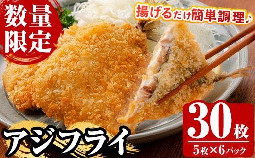 《数量限定》 国産 冷凍 アジフライ 30枚!(5枚×6パック) 鯵 …