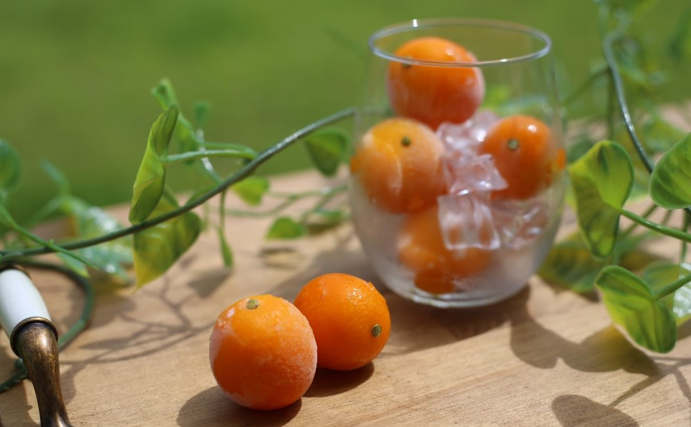 自社果樹園の樹上で完熟した、完熟金柑黄金丸を急速冷凍機(凍眠)凍らせた商品です。