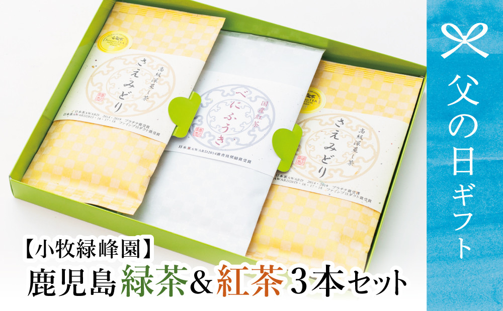 日本茶AWARDプラチナ賞「さえみどり(緑茶)」と「べにふうき(紅茶)」のセット 【父の日ギフト】【日本茶AWARD受賞】鹿児島緑茶と紅茶のセット(計250g) 鹿児島県産 かごしま お茶 日本茶 緑茶 紅茶 茶葉 小牧緑峰園 南さつま市 贈り物 ギフト 贈答用