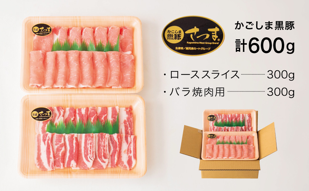 ブランド黒豚「かごしま黒豚」を販売指定店から直接お届け 【父の日ギフト】ブランド黒豚 かごしま黒豚 2種 計600g ローススライス&バラ焼肉用 お肉 国産 豚肉 鹿児島県産 冷凍 南さつま市 贈り物 ギフト 贈答用
