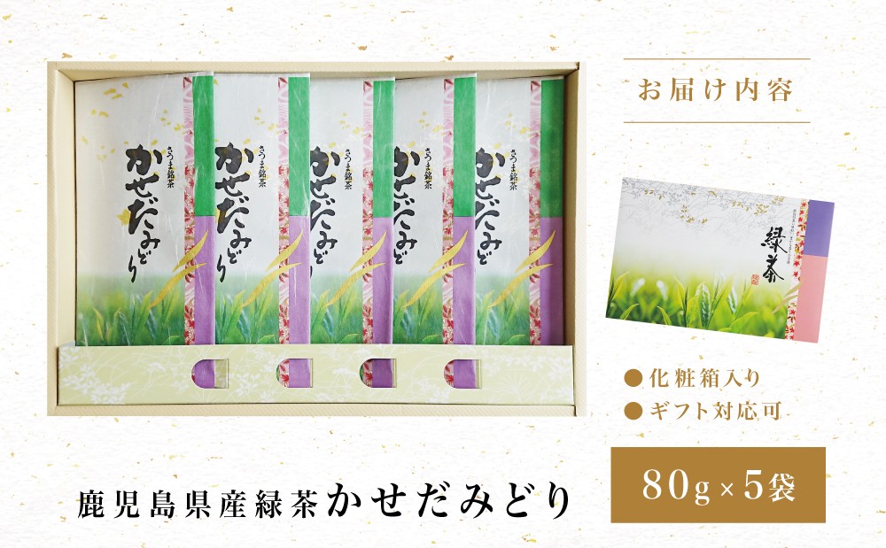| 容量 | 鹿児島県産緑茶 かせだみどり80g×5袋 |