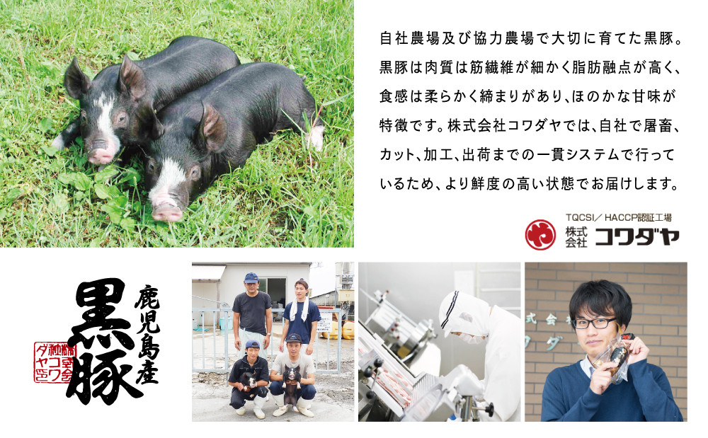 そんな鹿児島県の畜産振興と安定供給を目的に、世界基準の徹底管理された自社工場を有して県内外に黒豚を広めている会社、それがコワダヤです。