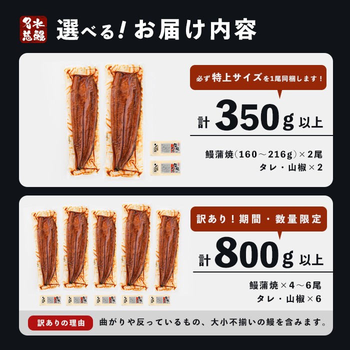 地域の生産者応援の品 【2026年丑の日(7/1~7/26配送)早期予約受付中】【訳あり】 【丑の日配送】【志布志市制20周年記念】【訳あり】【内容量が選べる!】復活!不揃いのうなぎ達 鹿児島県産 うなぎ蒲焼き<計350~800g以上> うなぎ 鰻 ウナギ 不揃い ふぞろい 訳アリ 国産 九州産 蒲焼 かばやき 人気 うな重 ひつまぶし