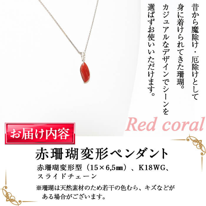 チョイス限定 貴重な赤珊瑚を使ったデザインペンダント!スライドチェーンでお好みの長さで使える 赤珊瑚変形ペンダント 1(15×6.5mm・変形型) we0-002