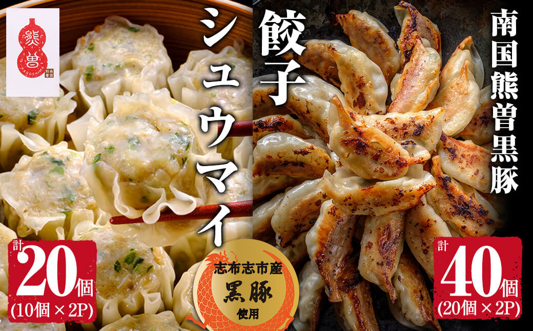 地域の生産者応援の品 貴重な鹿児島県志布志市の黒豚を使用したジューシーな餃子とシュウマイです 【訳あり】鹿児島県志布志市産黒豚使用 シュウマイ&訳あり餃子 計60個(シュウマイ 10個×2パック・餃子 20個×2パック) a3-181