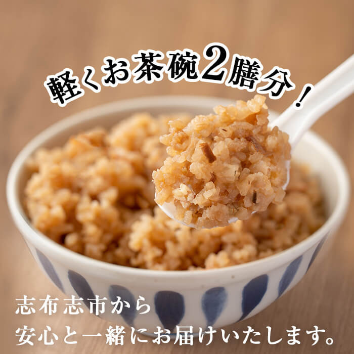 鹿児島県産米を100%使用し、かつお節も鹿児島県産にこだわった簡単便利な安心かつお節ご飯です。