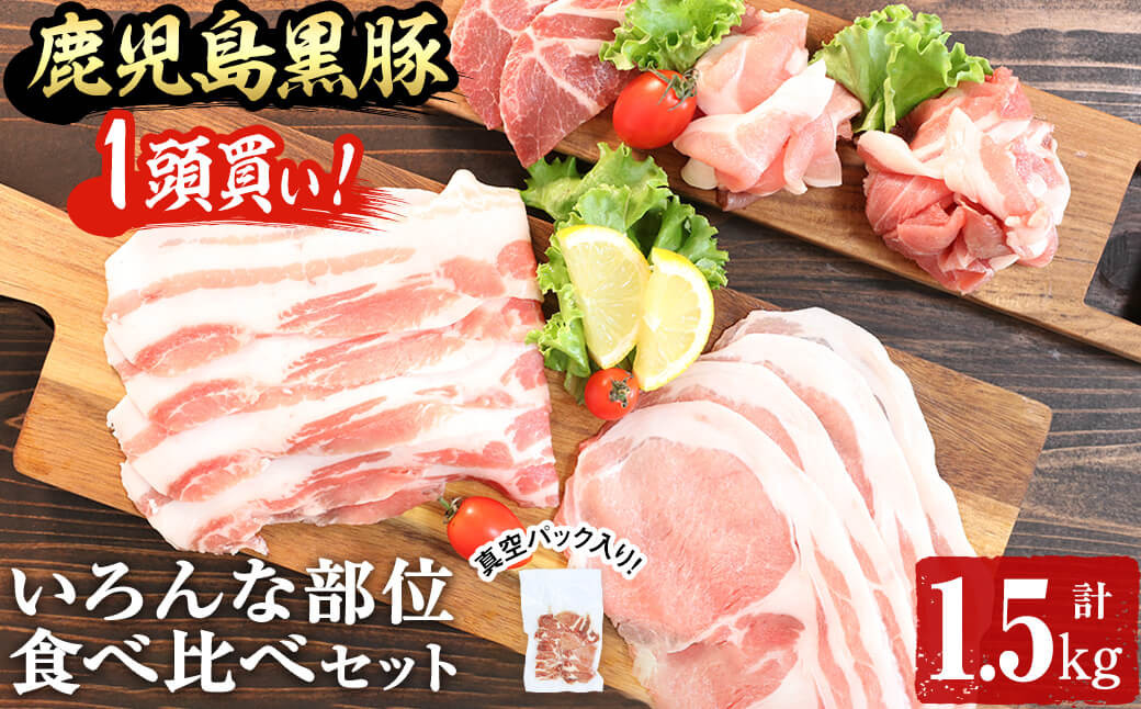 鹿児島県志布志市産の黒豚を使いやすい真空パックでお届け!5種類の部位が楽しめる! 鹿児島黒豚1頭買い!いろんな部位食べ比べ 計1.5kg a5-236