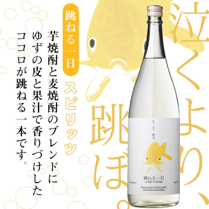 「跳ねる一日(27度)」は芋焼酎と麦焼酎にゆずの皮と果汁で香りづけした心が跳ねる1本です。