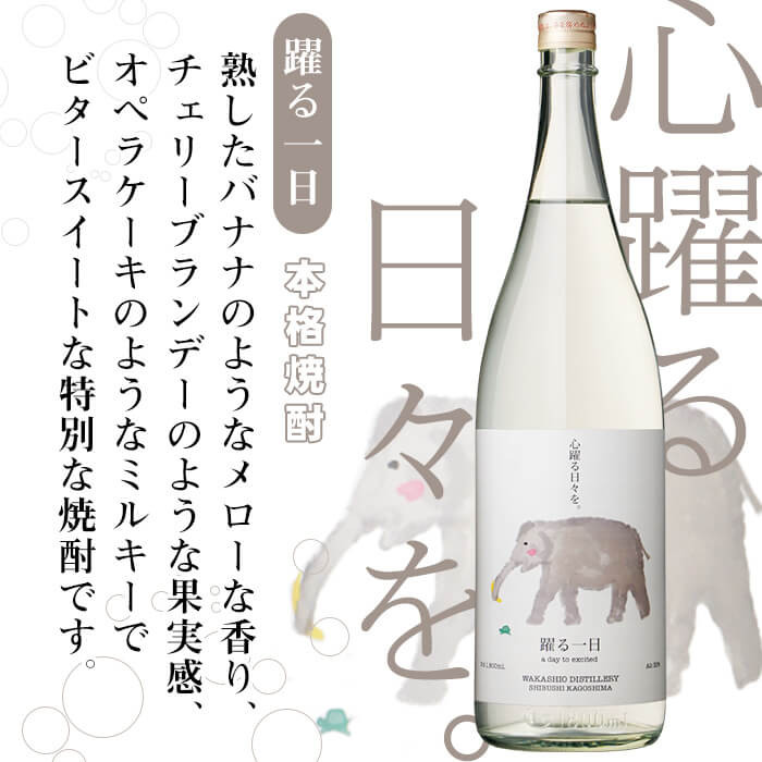 「躍る一日(30度)」は熟したバナナのようなメローな香り、チェリーブランデーのような果実感、オペラケーキのようなミルキーでビタースイートな特別な焼酎です。