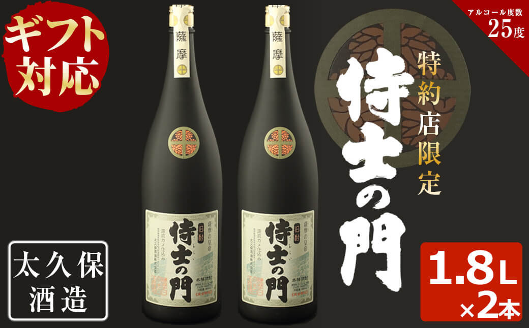 太久保酒造の特約店限定のプレミアム焼酎 【ギフト対応】幻の旧酎「侍士の門(さむらいのもん)」1,800ml×2本 計3,600ml 焼酎 芋焼酎 いも焼酎 芋 さつま芋 麹 酒 お酒 アルコール 常温 贈り物 プレゼント お歳暮 c0-098