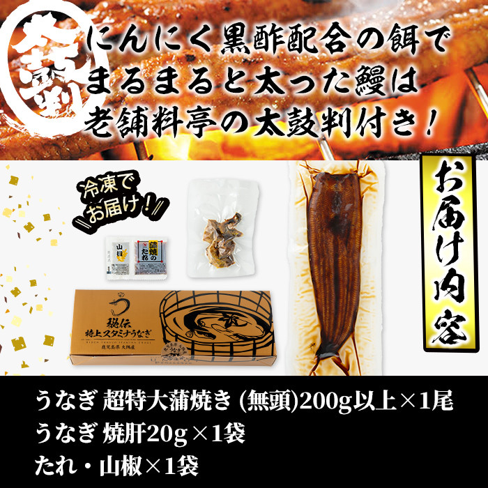 【2025年丑の日(7/1~7/19配送)早期予約受付中】超特大サイズの蒲焼き! 【7/7までの入金で丑の日までにお届け】【数量限定】鹿児島県産!秘伝の特上スタミナうなぎ超特大蒲焼き1尾<200g以上!>焼肝20g付き! a1-101