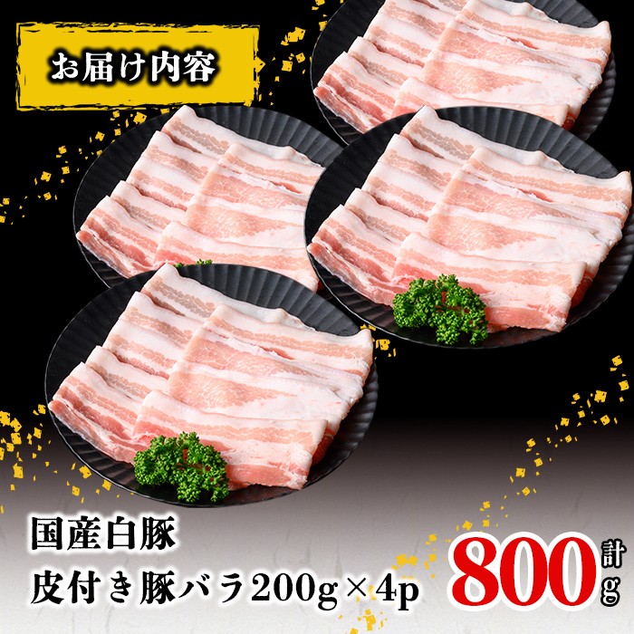珍!!皮付き豚バラ!コリコリとした食感が堪らない! 国産白豚皮付き豚バラ(200g×4P 計800g) 国産 豚 豚肉 肉 白豚 バラ 豚バラ 皮 皮付き お鍋 しゃぶしゃぶ 冷しゃぶ 小分け 冷凍 珍味 炒め物 a1-147
