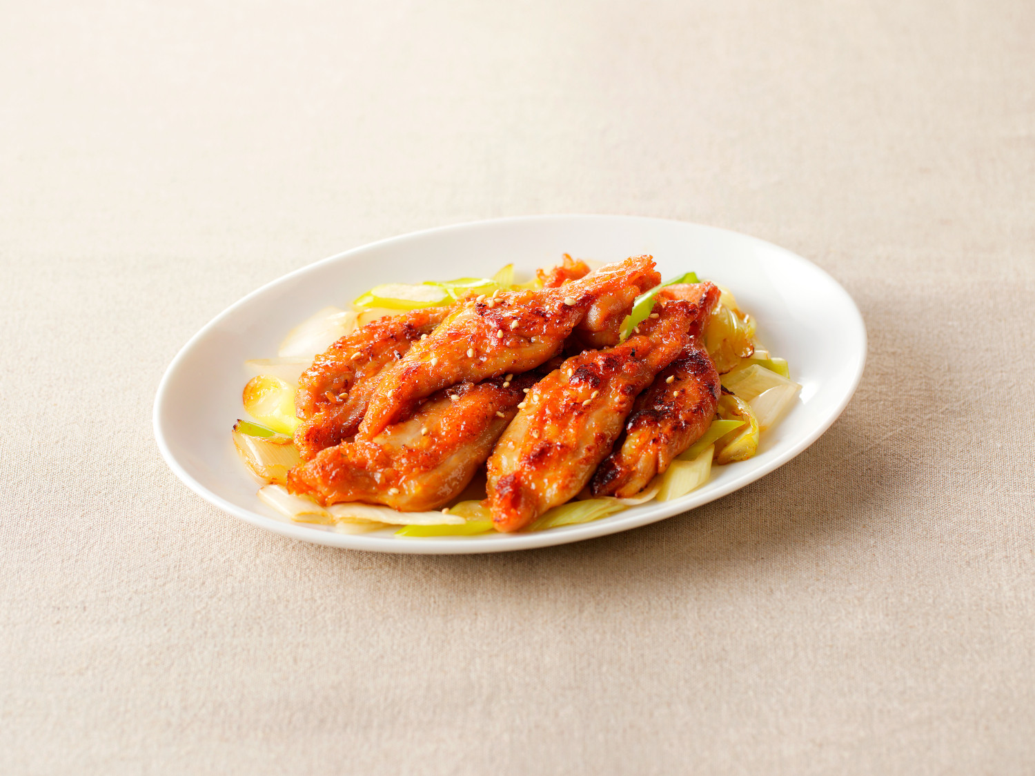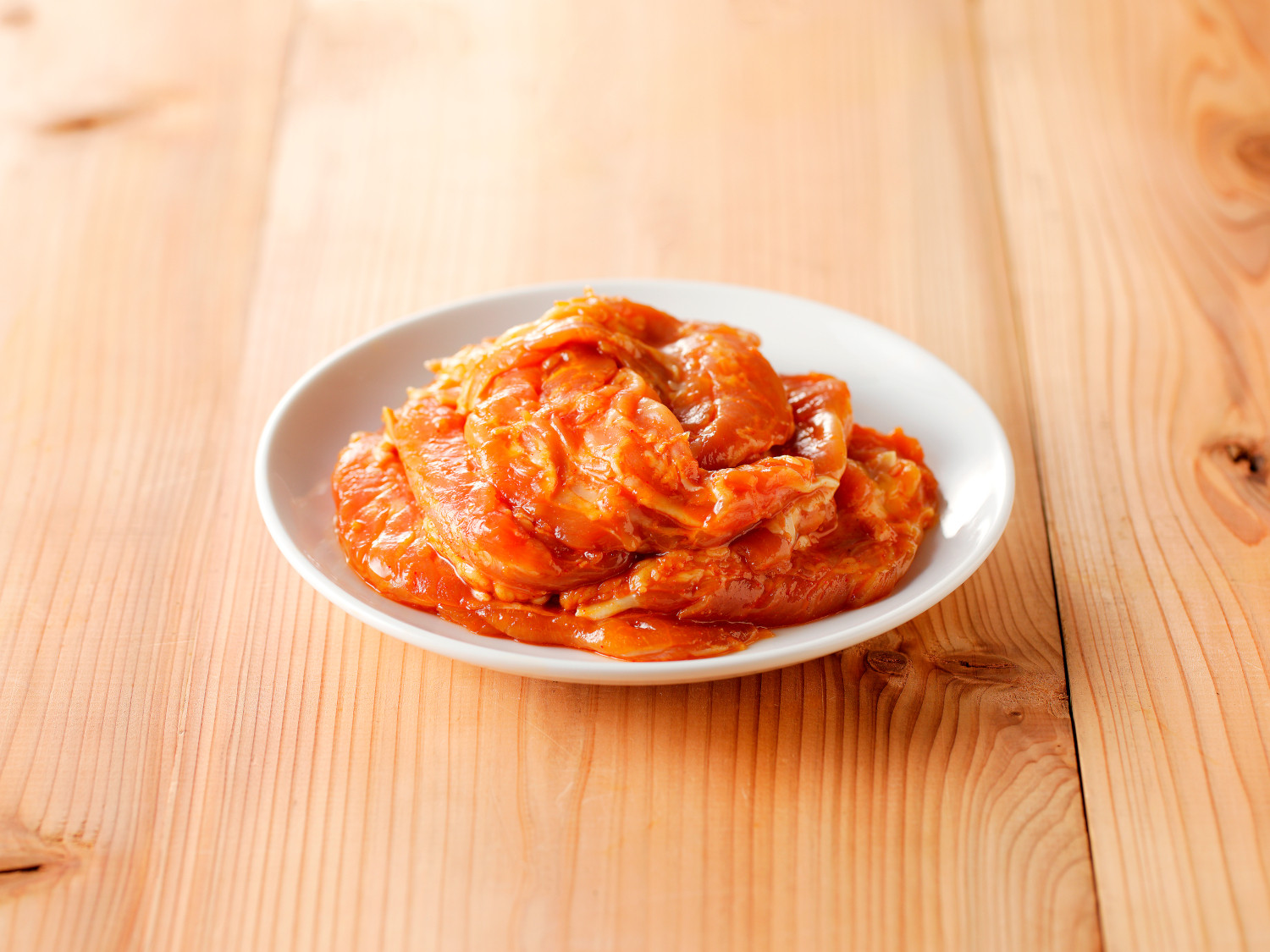 鶏のセセリ肉をコチュジャン等で味付けをしたタレに漬け込みました。