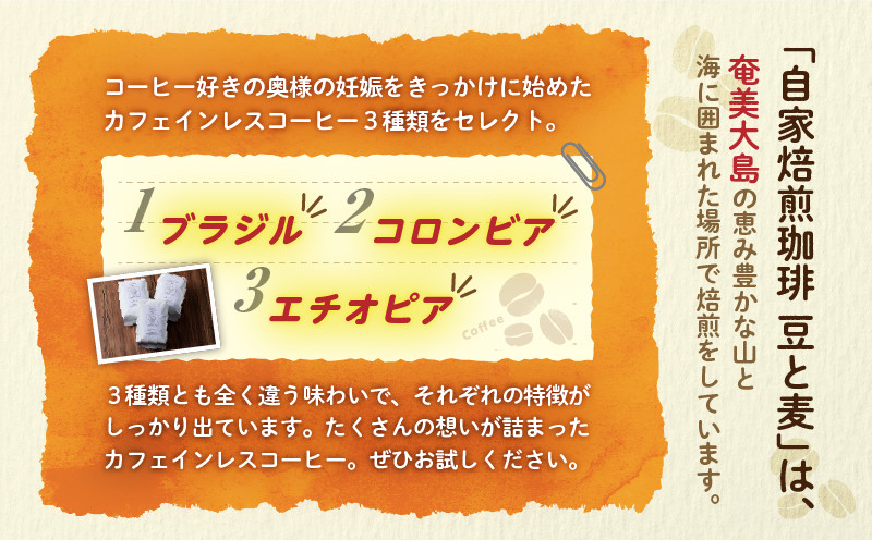 コーヒー 珈琲 カフェインレスコーヒー カフェインレス 香ばしい ローストナッツ マイルド 苦味 ブラジル コロンビア エチオピア カフェ 自家焙煎珈琲 豆と麦 自家焙煎珈琲豆と麦 ふるさと納税 奄美市 おすすめ ランキング プレゼント ギフト