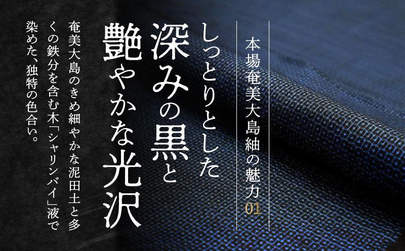 絹100%、奄美大島のきめ細やかな泥田土と多くの鉄分を含む木「シャリンバイ」液で染め、