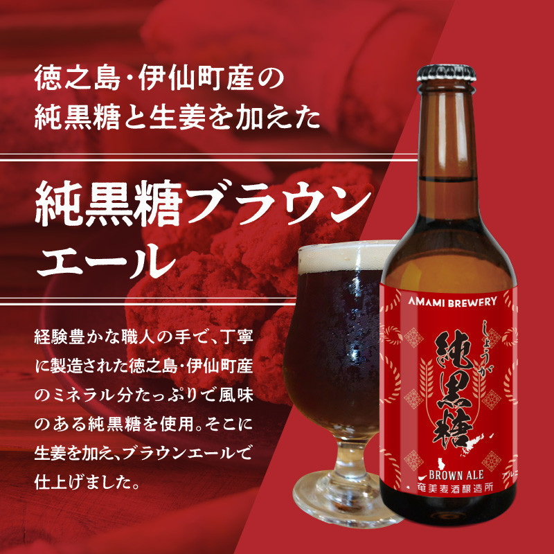 徳之島・伊仙町産のミネラル分たっぷり、風味のある純黒糖を使用し、さらに生姜を加え、ブラウンエールスタイルで仕上げました。