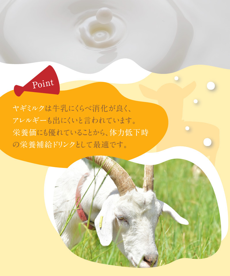 ヤギミルクは牛乳にくらべ消化が良く、アレルギーも出にくいと言われています。