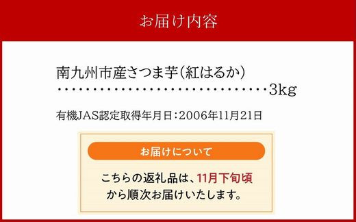 | 容量 | 鹿児島県産さつまいも「紅はるか」3kg |
