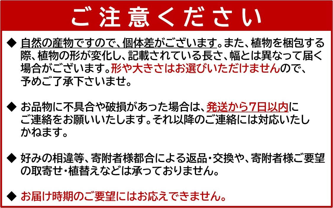 ※観葉植物は寒さに弱いことから、運送中に萎れてしまうことや枯れてしまうことを防ぐため、冬期の発送をしておりません。冬期は発送を見合わせ、暖かくなってからお届けいたします。予めご了承くださいませ。