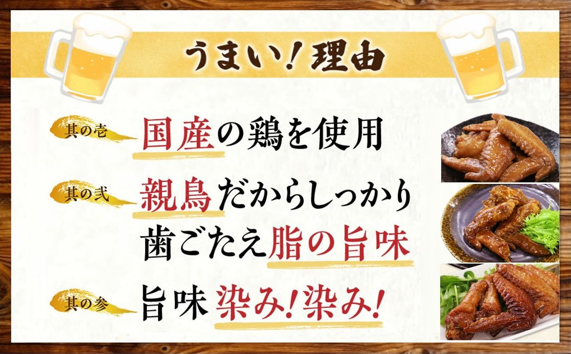 国産の親鶏手羽を使用した3種の味が楽しめるおつまみ手羽セット。