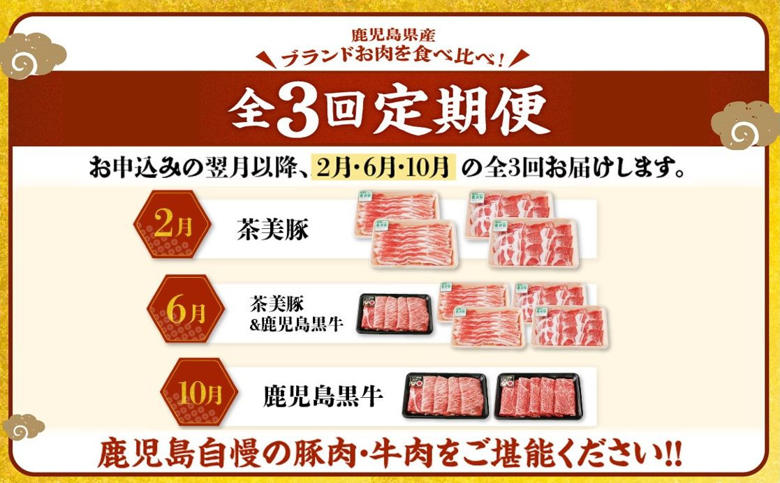 鹿児島自慢の鹿児島黒牛・茶美豚をたっぷり堪能!食べ比べ! 【全3回】鹿児島黒牛・茶美豚食べ比べ定期便 022-56