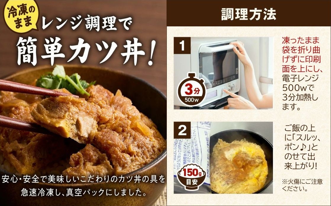 安心・安全で美味しい「こだわりのカツ丼の具」を急速冷凍し真空パックしました。