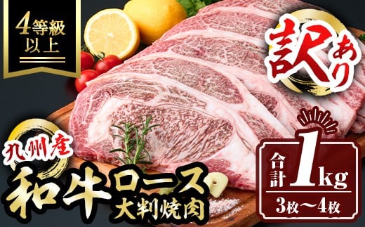 isa574 <訳あり>九州産和牛ロース大判焼肉(合計1kg・3枚~4枚…