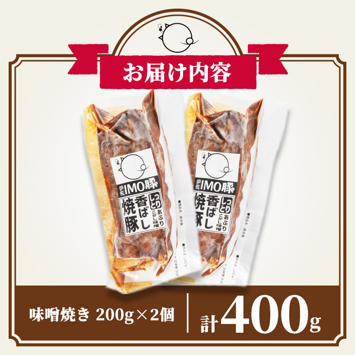 『IMO豚』の上質な脂身の甘みと強い旨味をご家庭で! isa401 《数量限定》「焼酎粕」を飼料として育てたIMO豚を配合にこだわった味噌に漬け込んだ香ばし味噌焼(計400g・200g×2個)ふるさと納税 伊佐市 特産品 鹿児島県 肉 豚肉 国産 九州産 おつまみ おかず 焼豚 IMO豚 いもぶた イモブタ 伊佐IMO豚【小料理ひろ】