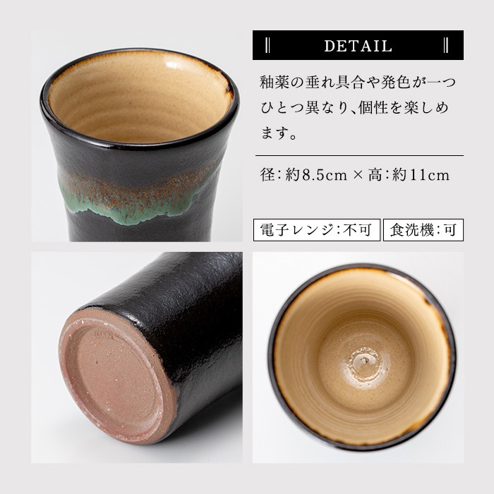 a290 姶良市の伝統工芸品「龍門司焼」ビアカップ(黒釉青流し) 【龍門司焼企業組合】 姶良市 陶器 食器 コップ カップ タンブラー 酒器 シンプル おしゃれ