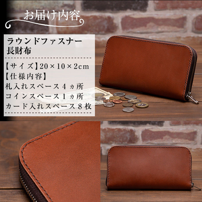 a493 本革ハンドメイド!2色から選べるラウンドファスナーの長財布!メンズレディース問わず使いやすい、全て本革を使用した財布【皮革工房凜】