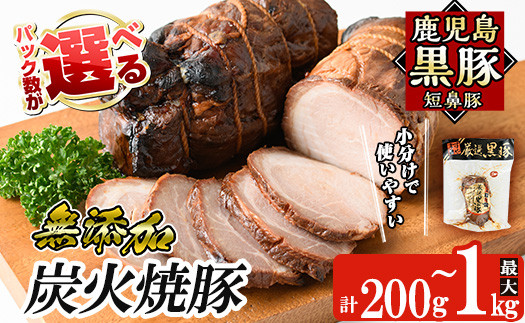 無添加国産!鹿児島黒豚肉使用炭火焼き豚♪ a009 <パック数が選べる!>鹿児島黒豚「短鼻豚」無添加炭火焼豚ウデ詰め合わせ(200g~1kg)【鹿児島ますや】姶良市 国産 鹿児島黒豚 焼き豚 無添加 炭火焼き豚 チャーシュー 豚肉