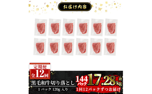 容量 | 黒毛和牛切り落とし(トレー無しSDGs) 【12回定期便】計17.28kg:120g×12P×12回 |