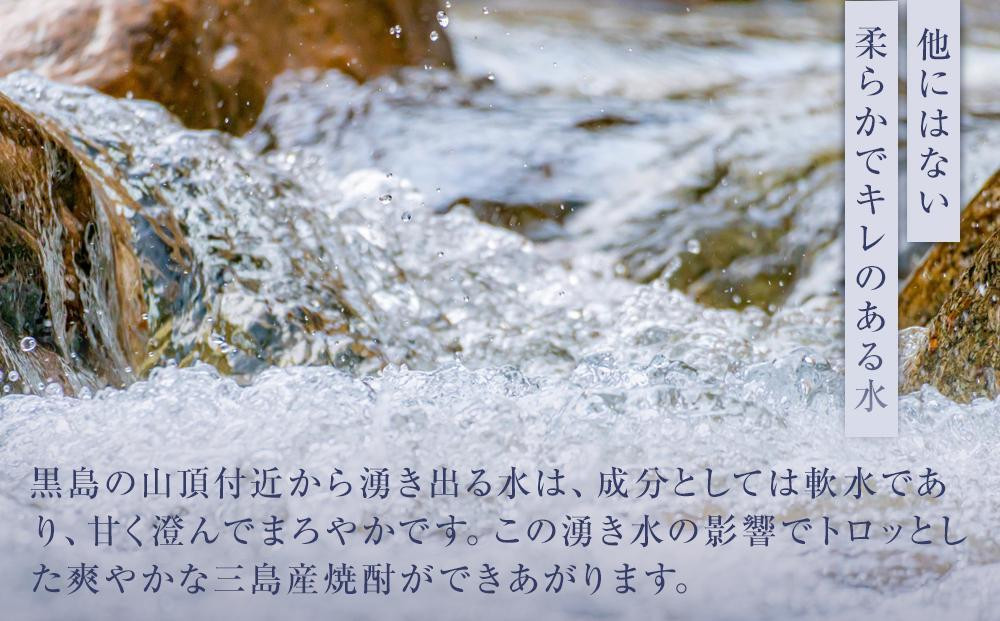 三島村硫黄島産のさつまいも(ベニオトメ)を使って作られた「黒麹造り」の焼酎です。