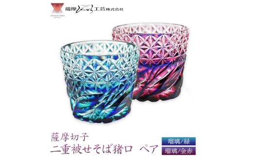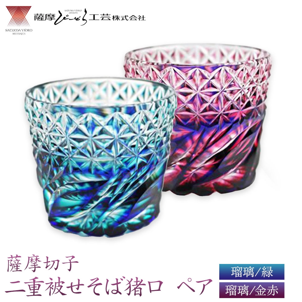 チョイスPayポイントと交換できる品 鹿児島県指定伝統的工芸品・薩摩切子をあなたに。 薩摩切子「二重被せそば猪口ペア」 瑠璃/緑 瑠璃/金赤 薩摩びーどろ工芸株式会社 《90日以内に出荷予定(土日祝除く)》鹿児島県 さつま町 送料無料 伝統工芸 切子 さつま切子 お猪口 酒器