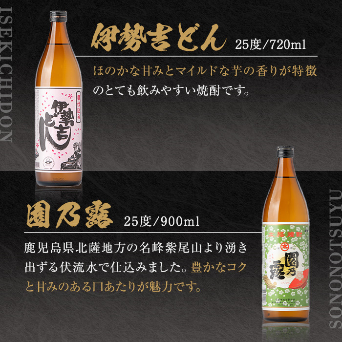 s001 鹿児島芋焼酎(北薩摩900ml×1本・伊勢吉どん720ml×1本セッ…