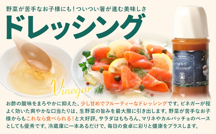 地場産品基準 告示第5条第3号に適合 適合理由:ドレッシングの製造工程のうち、原材料の仕入れから完成までの全ての工程を自社工場で行っている。