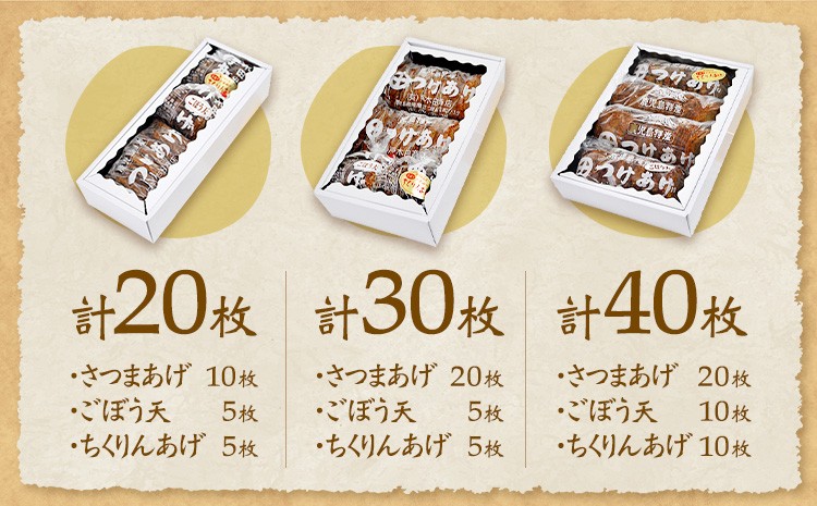 チョイスPayポイントと交換できる品 手づくりで仕上げた、老舗の技。 さつまあげ詰め合わせ 揚げ 20枚 30枚 40枚 惣菜 お惣菜 郷土料理 戸木田商店《30日以内に出荷予定(土日祝除く)》鹿児島県 さつま町 さつまあげ ごぼう天 ちくりんあげ 鹿児島名物 名産品 おかず