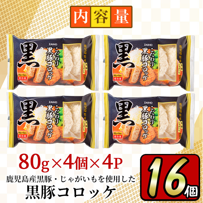 鹿児島県産の黒豚とじゃがいもを使用した冷凍コロッケ! y303 こだわり黒豚コロッケ(計16個・4個入×4P) 国産 九州産 黒豚 豚肉 ぶた肉 お肉 コロッケ 惣菜 レトルト おかず 冷凍 ミンチ【財宝】