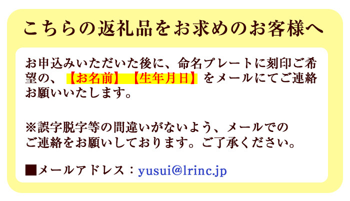 ※お申込みいただいた後に、命名プレートに刻印ご希望の【お名前】【生年月日】をメールにてご連絡をお願い致します。