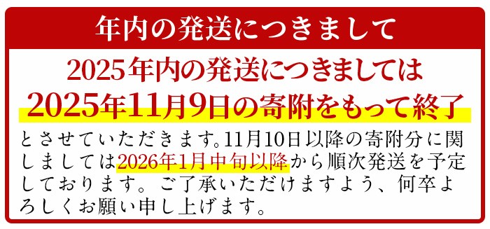 2026年1月中旬以降順次発送 ※配送日時の指定は出来かねますので、ご了承くださいませ。 ※お申込みが集中した場合や、年末年始(11月~翌年2月)を含む繁忙期には、通常よりもお届けまでにお時間をいただく場合がございます。あらかじめご了承ください。 |