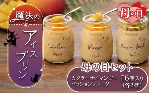 【2026年母の日までにお届け】 こちらの返礼品は母の日の5月10日(日)までにお届けします。 ※配送日時指定はお受けすることが出来ません。 ▽商品詳細 ・カタラーナ(スペインカタルーニャ地方の伝統的デザート「クレマカタラナ」から生まれたイタリアでも定番のドルチェです。濃厚なプリンの上にぱりぱりのカラメルが乗っています。冷凍庫で冷やして食べるフローズンスィーツです。ベースのプリンは新鮮な卵を使用しています。) ・冷凍チーズプリン「おおさき完熟マンゴー」(人気の冷凍プリンの上に大崎町産の完熟マンゴーをトッピング。) ・冷凍チーズプリン「おおさきパッションフルーツ」(人気の冷凍プリンの上に、地元産の完熟パッションフルーツをトッピングしました。程よい酸味のきいたパッションフルーツとクリームチーズを使用したプリンの相性は抜群です。) 【数量限定】
