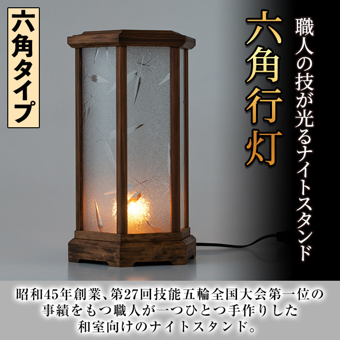 技能五輪全国大会第一位の事績をもつ職人が手作りした和室向けのナイトスタンド 【2801405a】職人の技が光る六角行灯(ウォルナット色) 雑貨 工芸品 ライト 灯 LED コンセント【林田木工】