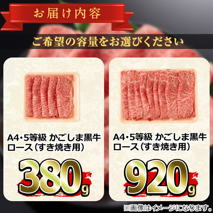 A4等級以上のロース肉すき焼き用!きめ細やかな肉質とバランスのいい霜降り! <容量が選べる!>鹿児島県産A4等級以上!黒毛和牛ロースすきやき用(380g/920g) 国産 牛肉 肉 冷凍 ロース 鹿児島 すき焼き しゃぶしゃぶ【デリカフーズ】