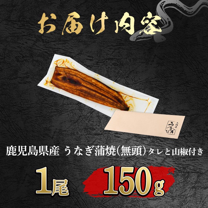 うなぎ生産量日本一の鹿児島県!国産で安心!豊富な地下水で育った鰻の蒲焼き!! 【0074325a-2607】<土用丑の日までにお届け><数量限定・宅配袋発送>東串良町のうなぎ蒲焼(無頭)(1尾・約150g・タレ、山椒付) うなぎ 高級 ウナギ 鰻 国産 蒲焼 蒲焼き たれ 鹿児島 ふるさと お試し 【アクアおおすみ】