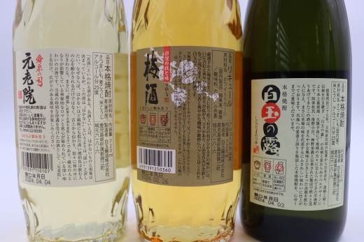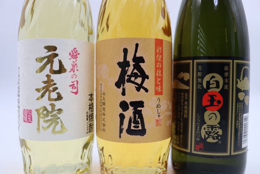 | 容量 | 元老院720ml×2本 梅酒720ml×1本 白玉の露720ml×1本 ※20歳未満の飲酒は法律で禁止されています。 |