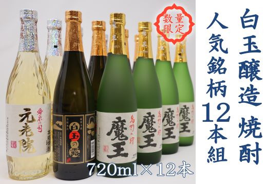 全国的に有名な魔王を醸す錦江町の蔵元、白玉醸造の人気銘柄3種の12本セットを数量限定にてお届けいたします。