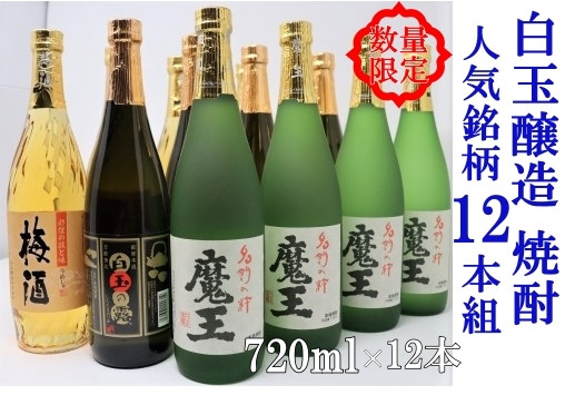全国的に有名な魔王を醸す錦江町の蔵元、白玉醸造の人気銘柄3種の12本セットを数量限定にてお届けいたします。