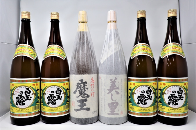 | 容量 | 魔王 1800ml×1本 白玉の露 1800ml×4本 美し里 1800ml×1本 ※20歳未満の飲酒は法律で禁止されています。 |