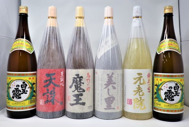 | 容量 | 魔王 1800ml×1本 白玉の露 1800ml×2本 元老院 1800ml×1本 天誅 1800ml×1本 美し里 1800ml×1本 ※20歳未満の飲酒は法律で禁止されています。 |