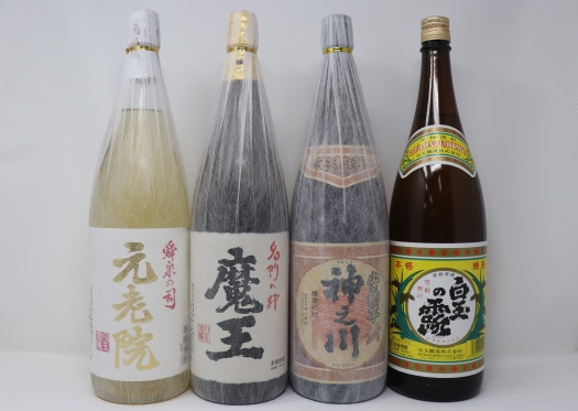 | 容量 | 魔王 1800ml×1本 元老院1800ml×1本 神之川安納1800ml×1本 白玉の露1800ml×1本 ※20歳未満の飲酒は法律で禁止されています。 |